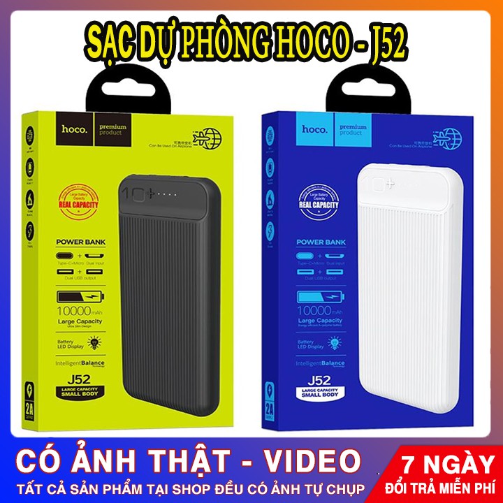 - Sạc đề phòng Hoco J52 10.000mAh sở hữu kiểu dáng đẳng cấp, nhỏ gọn, lại được trang bị công nghệ sạc nhanh an toàn với dung lượng lên đến 10000mAh là sự lựa chọn lý tưởng đồng hành cộng dòng smartphone