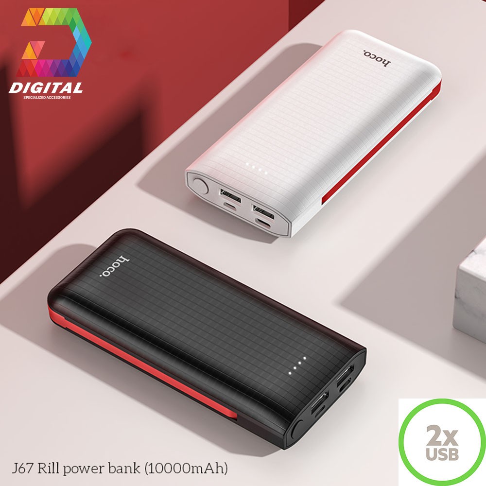 - Kiểu dáng nhỏ nhắn, gọn nhẹ Sạc dự phòng đa năng Hoco J67 có kích thước thước chỉ 131 * 60 * 23mm.Dung lượng 10000mAh cùng với 2 dây cáp sạc.