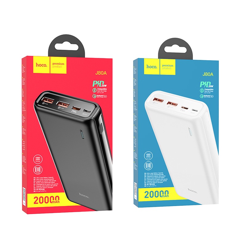 Sạc dự phòng Hoco J80A 20000mah sạc nhanh 22,5W công nghệ sạc nhanh QC3.0 PD VOOC hàng chính hãng bảo hành 12 tháng