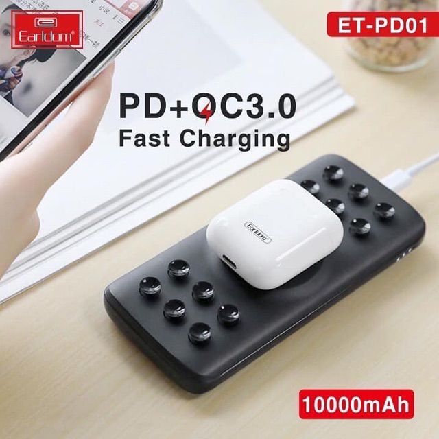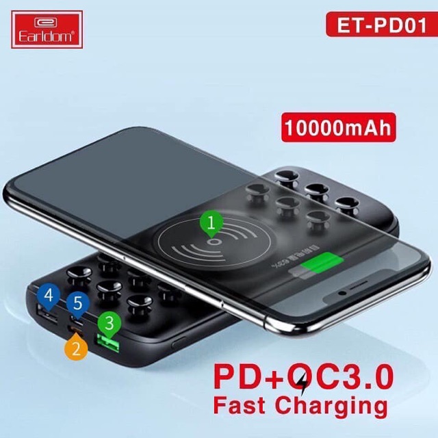 - Công nghệ di động cụ thể là smartphone ngày càng phát triểu đi kèm theo đó là các sản phẩm phụ kiện hỗ trợ kèm theo cũng phát nhàm đáp ứng nhu cầu của người sử dụng. Sạc Dự Phòng Kèm Sạc Không Dây Earldom PD-01 ra đời nhằm đáp ứng nhu cầu của người sử dụng về thiếu nguồn năng lượng trong những trường hợp đặc biệt