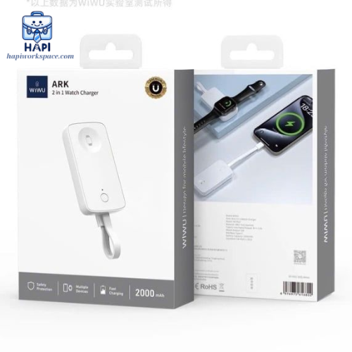 Sạc dự phòng không dây hàng chính hãng WiWU ARK 2-in-1 2000mAh Wi-M22: Sạc đồng hồ nhà "Táo", tai nghe, bàn phím, chuột