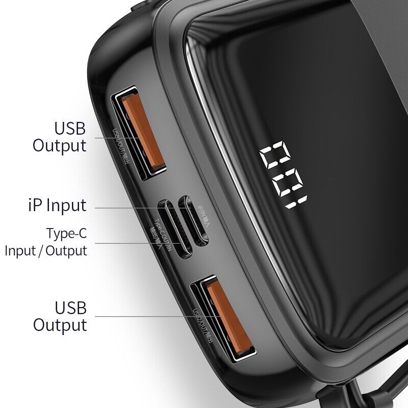 Thiết kế nhiều đầu vào và đầu ra tạo điều kiện cho việc lưu trữ năng lượng cho nhiều cáp và sạc nhiều thiết bị cùng một lúc