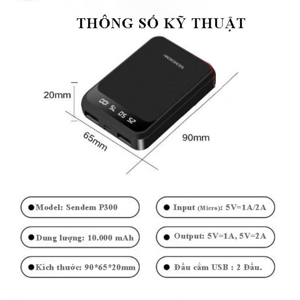 ***THÔNG TIN SẢN PHẨM:Sạc Dự Phòng Mini Cầm Tay Thông minh Sendem P300 Chính Hãng dung lượng 10000mah, thiết kế nhỏ gọn tiện dụng nhiều màu/Max