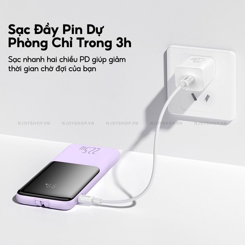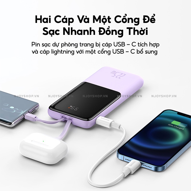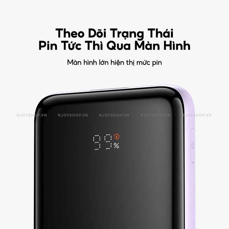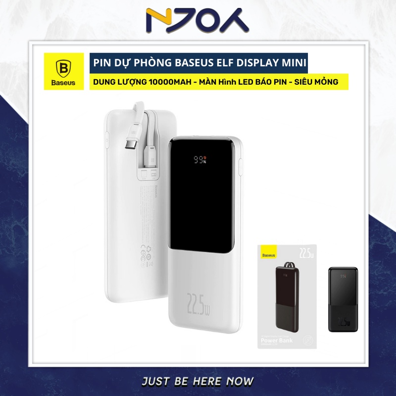Giới thiệu Sạc Dự Phòng Mini 10000mAh BASEUS Elf Digital Display Sạc Nhanh PD 22.5 W Trang Bị Cáp Type-C Lightning Đèn Led Báo Pin