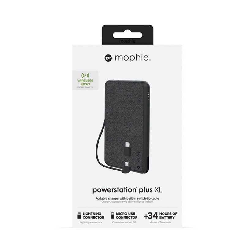 Sạc dự phòng Mophie Powerstation Plus XL Fabric 10.000mAh tích hợp cáp Lightning/micro USB 40110678