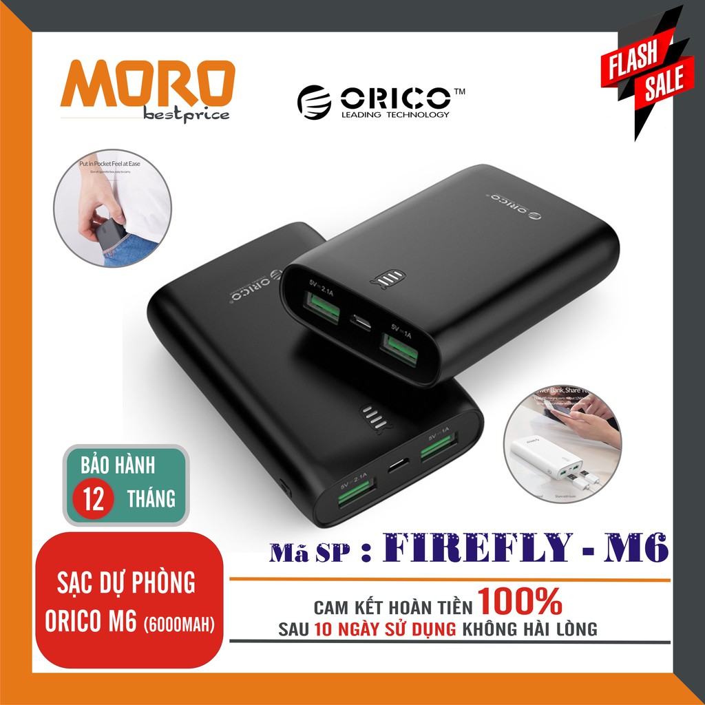 Điện Thoại & Phụ Kiện > Pin sạc dự phòng > 5000 - 10000mAh || SẠC DỰ PHÒNG ORICO FIREFLY M6 – 6000 mAH - Phân phối chính hãngCòn hàng