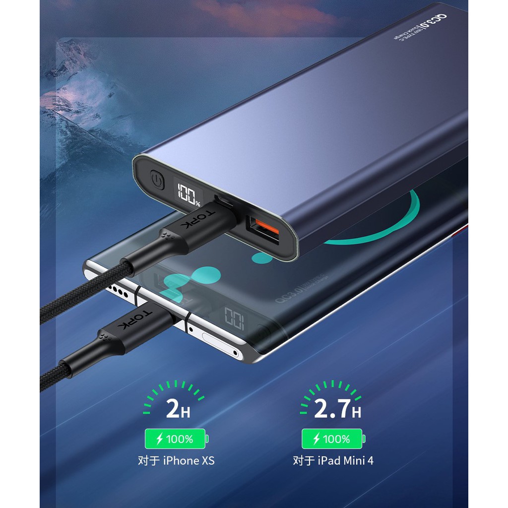 Sạc dự phòng - Sạc dự phòng Topk 10000mah - Sạc nhanh 20w - Sạc ra,vào qua cổng type-C