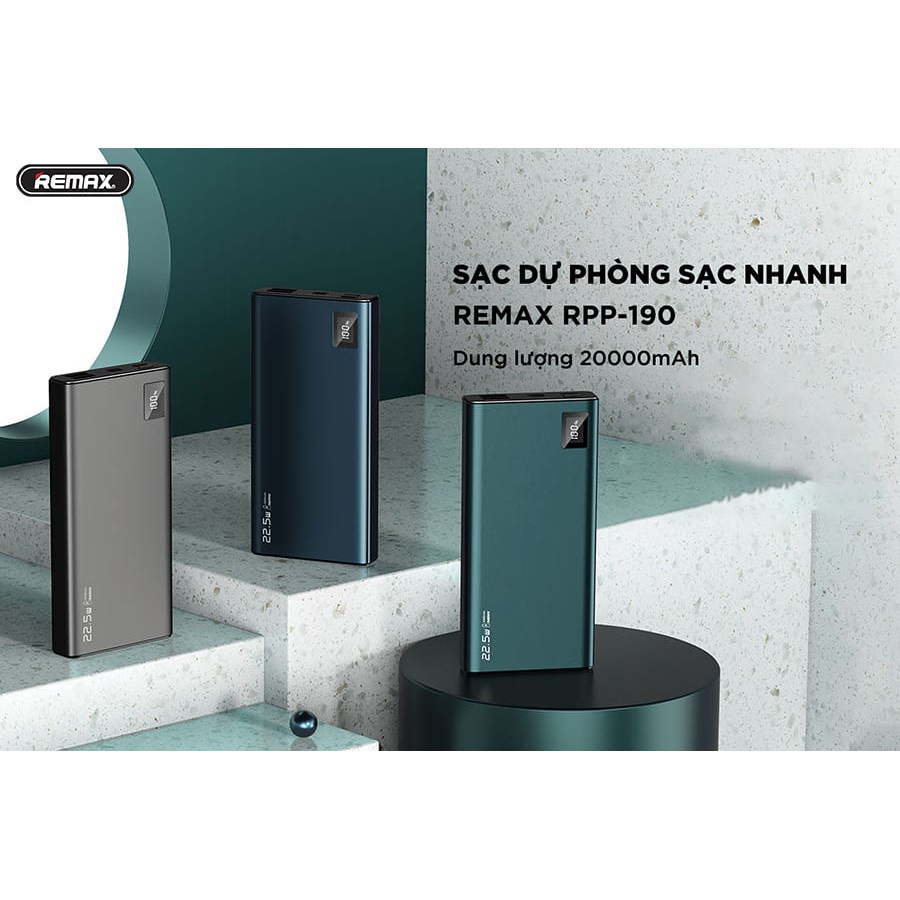 Sạc dự phòng sạc nhanh 22.5W chuẩn PD 20000mAh Remax RPP190