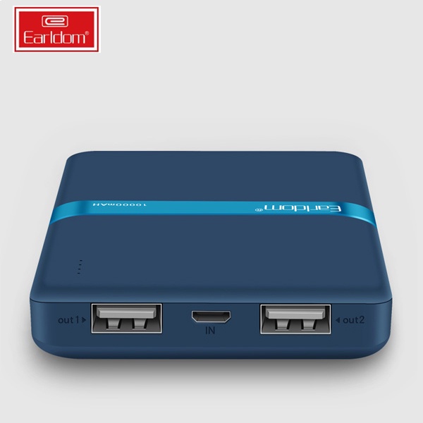 - Sạc cùng lúc 2 thiết bị: Pin sạc dự phòng Earldom PB10 10000 Mah tích hợp 2 cổng ra 2A chắc chắn sẽ giúp bạn tiết kiệm nhiều thời gian hơn. Giờ đây, bạn không cần phải chờ quá lâu để sạc cho từng chiếc điện thoại, máy tính bảng của mình.