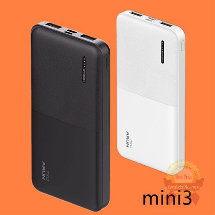 Sạc dự phòng Type_C 10000mah – Pin dự phòng Arun mini 3 siêu mỏng Type C Micro USB 2 cổng tiện lợi• PIN DỰ PHÒNG ARUN MINI 3 10.000mah