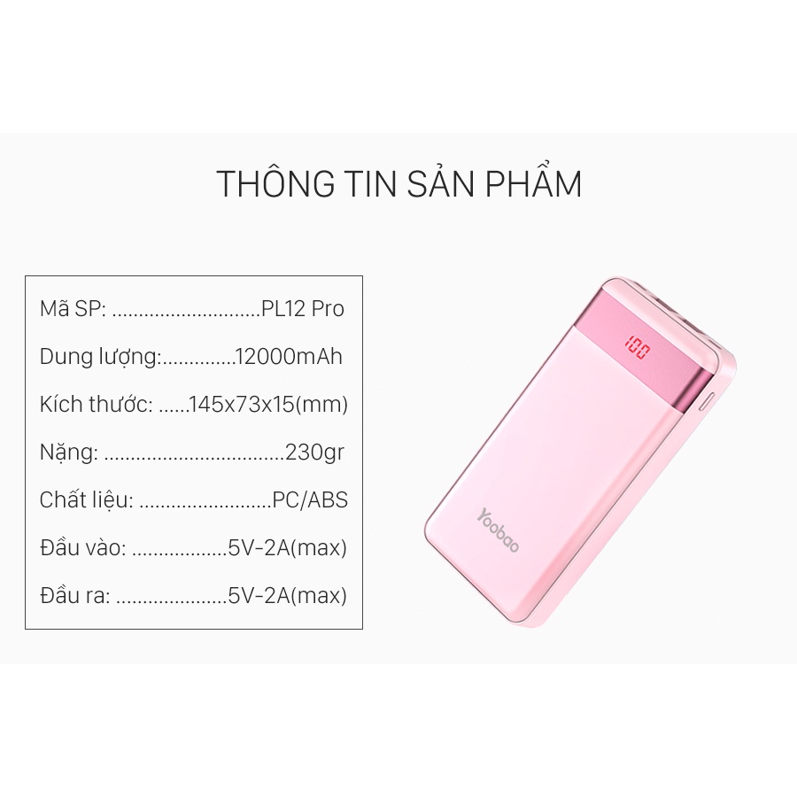 Thương hiệu: Yoobao | Xem thêm các sản phẩm Pin sạc dự phòng di động của YoobaoMô tả ngắn