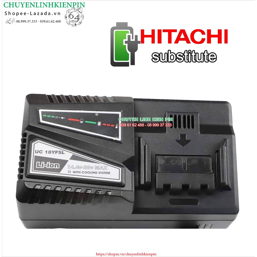 Sạc Hitachi 14/18V Li-ion 18YFSLSạc thay thế cho sạc Hitachi UC18YFSL với tiêu chuẩn cao, an toàn, bảo vệ pin hiệu quả