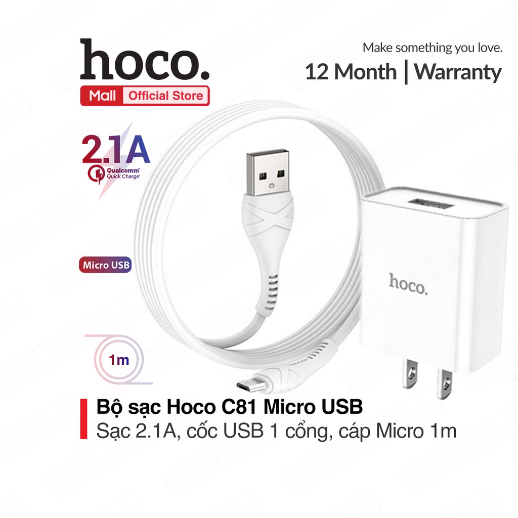 Giới thiệu Bộ sạc Hoco C81 Micro USB sạc nhanh 2.1A Max, chân cắm tiêu chuẩn ( củ kèm cáp Micro )