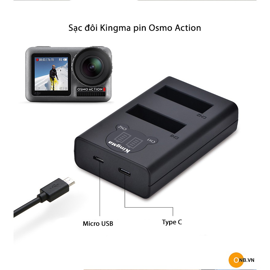 Cameras & Flycam > Phụ kiện máy ảnh > Bộ sạc pin || Sạc Kingma đôi cho Osmo Action có LCD hiển thị sạcCòn hàng