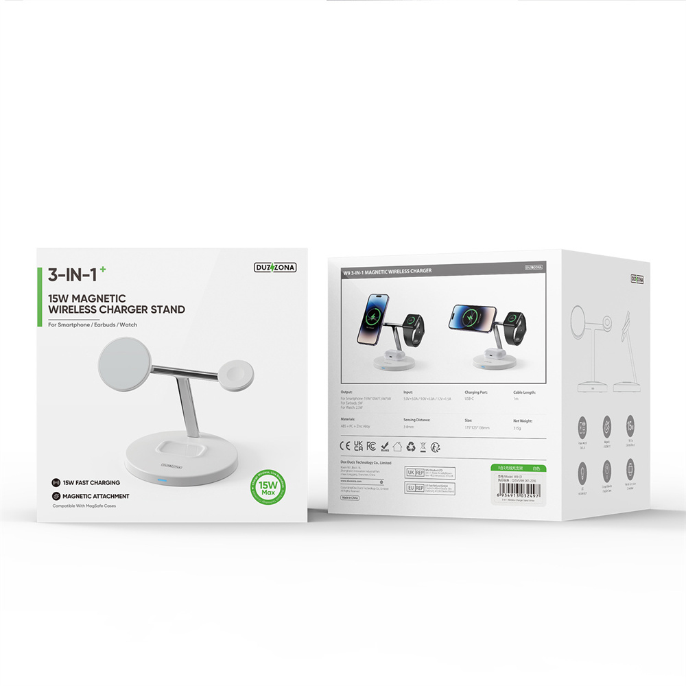 Sạc Magnetic Duzzona W9 3-in-1 15W cho iPhone / Apple Watch / AirPods - Hàng Chính Hãng