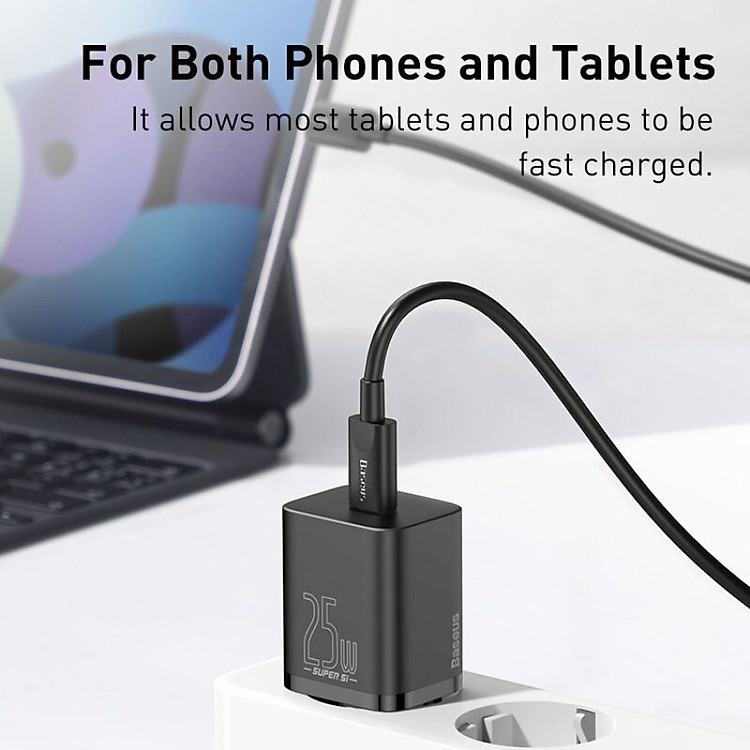 - Nhờ được trang bị công nghệ bán dẫn Super Si nên Bộ sạc nhanh đa năng Baseus Super Si Quick Charger 25W có thể hỗ trợ đồng thời các chuẩn sạc nhanh Power delivery và Quick charge 3.0 với công suất lên đến 25W nhưng với một kích thước vô cùng nhỏ gọn.
