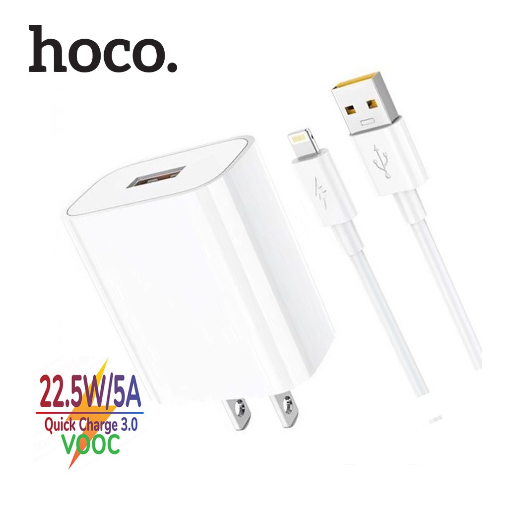 Bộ Sạc Nhanh Dành Cho Hoco DC19 USB To IP, Sạc Nhanh 5A/22.5W, Kèm Dây Dài 1m, Hỗ Trợ Sạc VOOC, Quick Charge 3.0, Hàng Chính Hãng