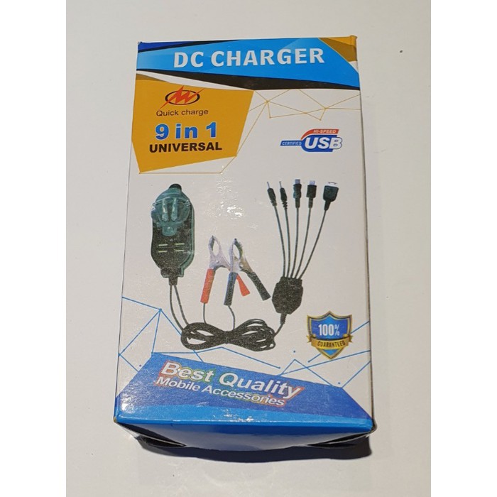 Bộ sạc DC 9 trong 1. (Bộ sạc dòng điện một chiều) để kết nối với ắc quy 12V. Kết nối bộ sạc DC 9 trong 1 này để sạc điện thoại di động của bạn khi đang di chuyển hữu ích để sạc hầu hết các loại Điện thoại di động trên thị trường .