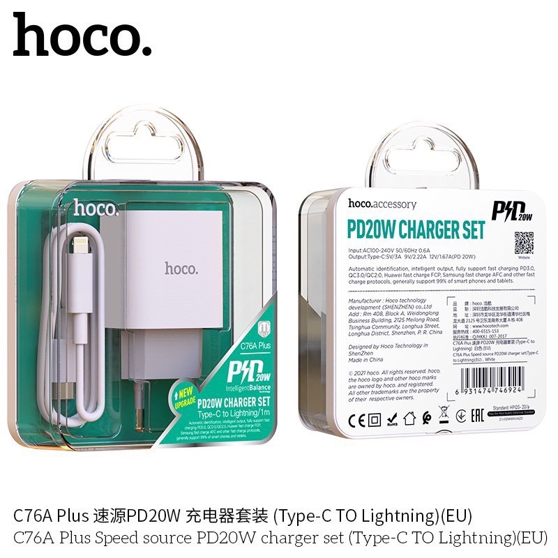 Giới thiệu Bộ Sạc Nhanh iphone 20W PD. Chính Hãng Hoco C76. Sạc Nhanh PD 20W/3.0A (Bảo Hành 1 Năm)