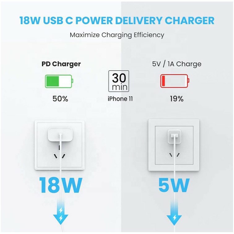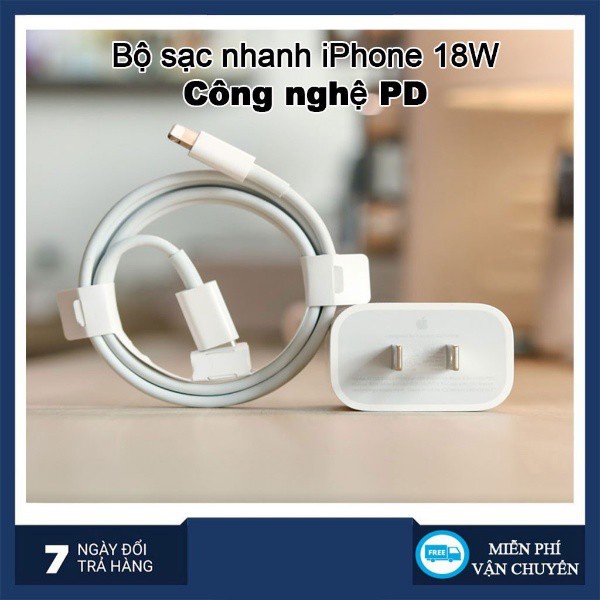 Bộ Sạc Nhanh Iphone PD 18W USB-C To Lightning là bộ sạc nhanh mới được ra mắt năm 2019 , chỉ có khi mua IPhone 11 Pro Max ( trong hộp Iphone 11 Pro hay Iphone 11 cũng ko có đâu nhé, vẫn là bộ 5W như các đời trước)Bộ Sạc này sạc từ 1% đến 50% mất khoảng 30 phút, (Cứu cánh khi sắp hết pin mà không có thời gian sạc), sau đó sẽ chuyển về chế độ sạc tự động theo thói quen trên ios