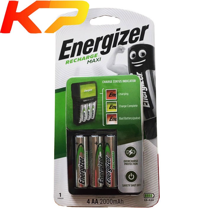 - Bộ sản phẩm bao gồm một bộ sạc và 4viên pin Energizer AAcó dung lượng 2000mAh cho thời gian sử dụng bền bỉ.
