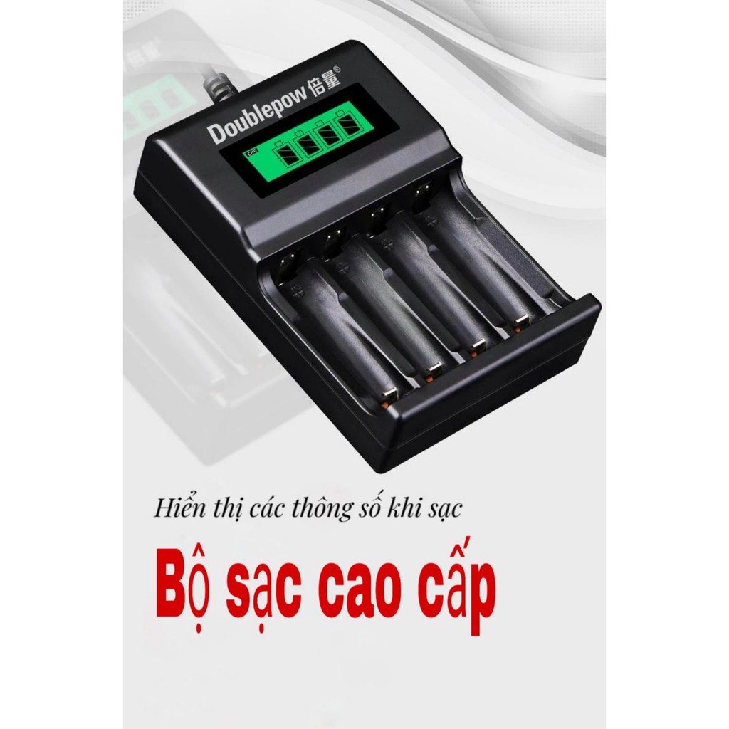 Bộ Sạc Pin AA, AAA K93B Doublepow tự ngắt khi đầy Tốc Độ Cao Hiển Thị Màn Hình LCD kèm pin sạc aa 1200mAh