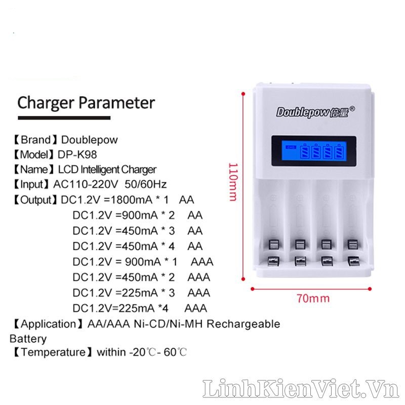 Giới thiệu Bộ sạc pin đa năng tốc độ cao thông minh tự ngắt, màn hình LCD báo dung lượng Doublepow DP-K98