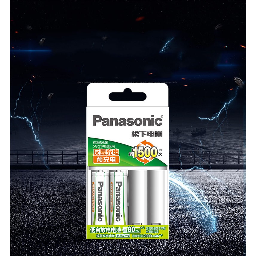 Sạc Pin Panasonic AA/AAA + 2 Pin Sạc AA 2000mAh BQ-CC51C Tự Ngắt Khi Pin Đầy