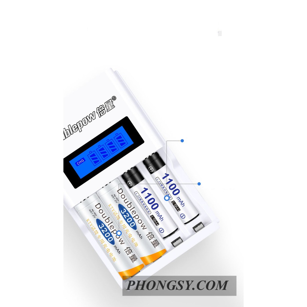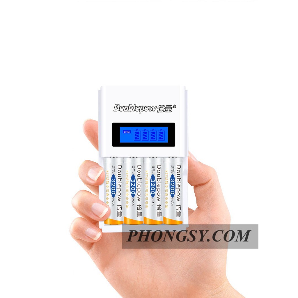 Bộ Sạc Pin tiểu AA, AAA K98 Doublepow tự ngắt khi đầy tốc độ cao màn hình LCD tặng kèm pin sạc AA 3200mAh