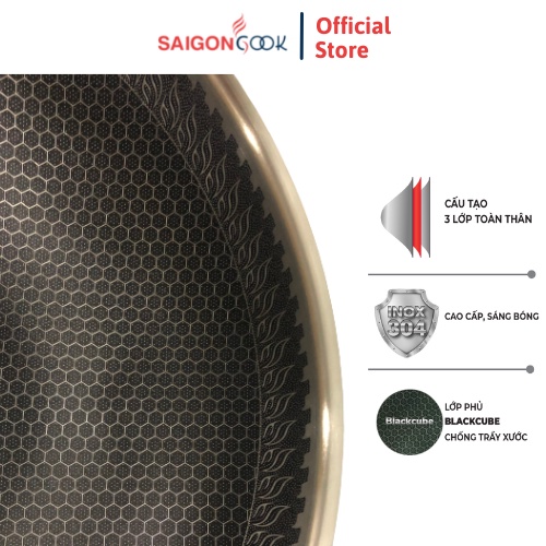 Giới thiệu [Saigoncook] Chảo chống dính Blackcube Prime X3 - Công nghệ BLACKCUBE TỔ ONG sâu lòng 3 lớp [đủ size]