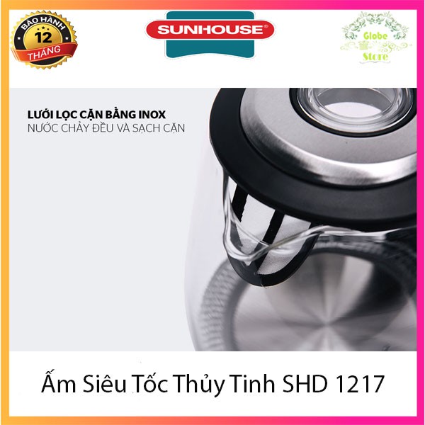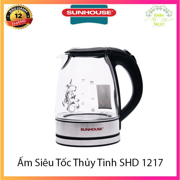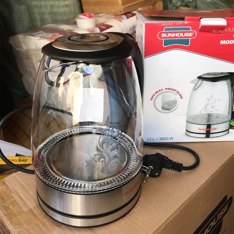 [SALE] Ấm Siêu Tốc, Bình Siêu Tốc Thủy Tinh Trong Suốt Sunhouse 1.7L SHD 1217