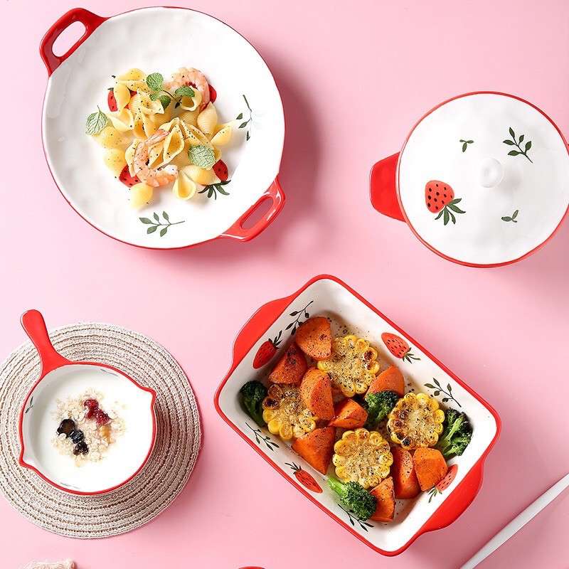 Nhà cửa & Đời sống > Bộ đồ bàn ăn > Dĩa || ( SALE) Bộ bát đĩa dâu Tây, bộ sứ dâu Tây cao cấp, vẽ dưới men thủ công, dùng được cho lò nướngCòn hàng