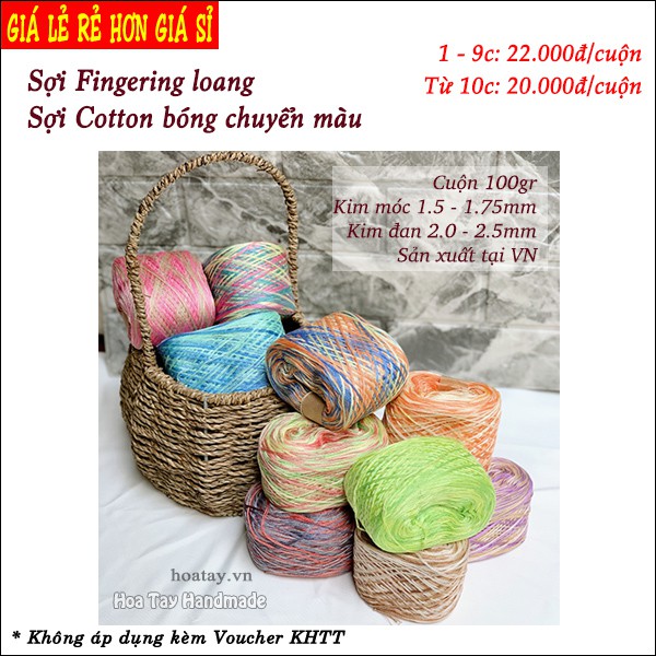 Sở thích & Sưu tầm > Dụng Cụ May Vá || SALE BỎ MẪU - Sợi Fingering loang - Sợi cotton bóng chuyển màu dùng đan móc áo mùa hè.Còn hàng