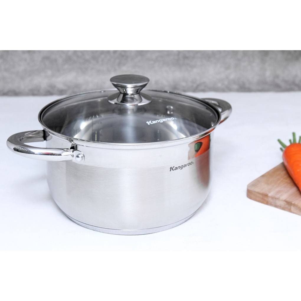 NỒI ĐƯỜNG KÍNH 24 CM, THÂN CAO THÍCH HỢP NẤU CANH, NẤU LẨU CHO 3 - 5 NGƯỜI DÙNG, LUỘC NỬA CON GÀ NHỎ KHOẢNG 0.5 KGNồi inox 3 đáy Kangaroo KG868L thương hiệu Việt Nam với kiểu dáng bắt mắt, thiết kế thân nồi 1/3 tráng gương và 2/3 bóng mờ tạo nét sang trọng.