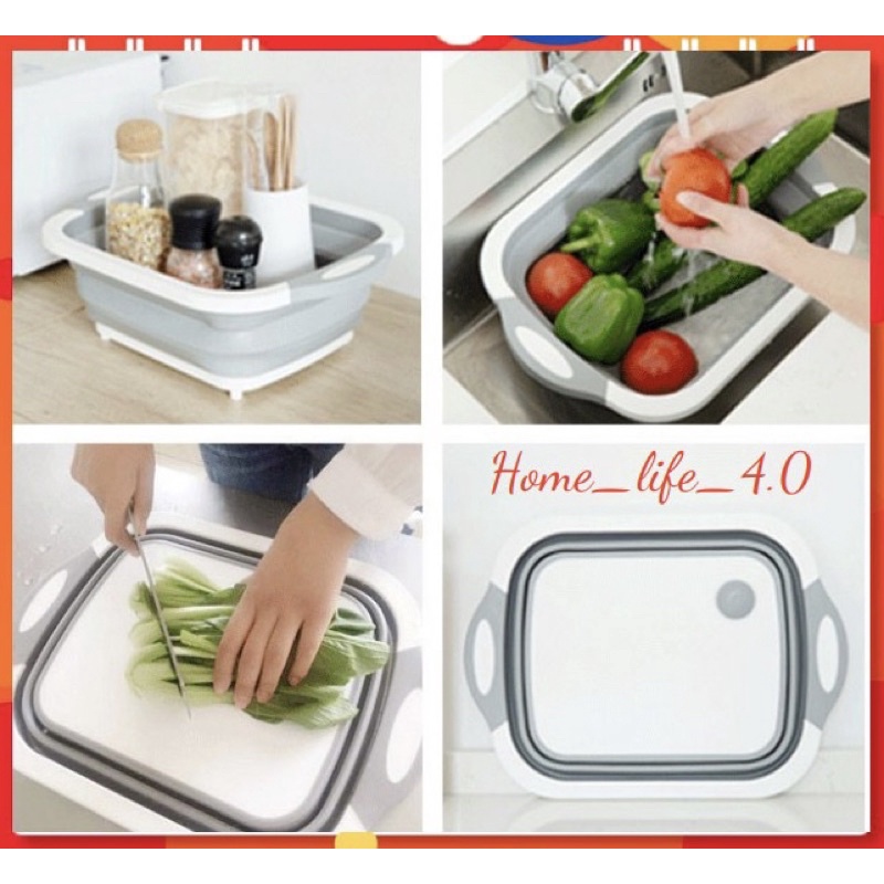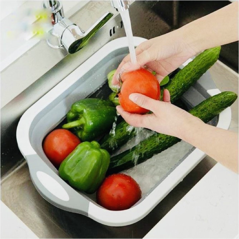 Bộ chậu gấp gọn kèm thớt tiện dụng | Bộ thớt đa năng kiêm chậu xếp gọn