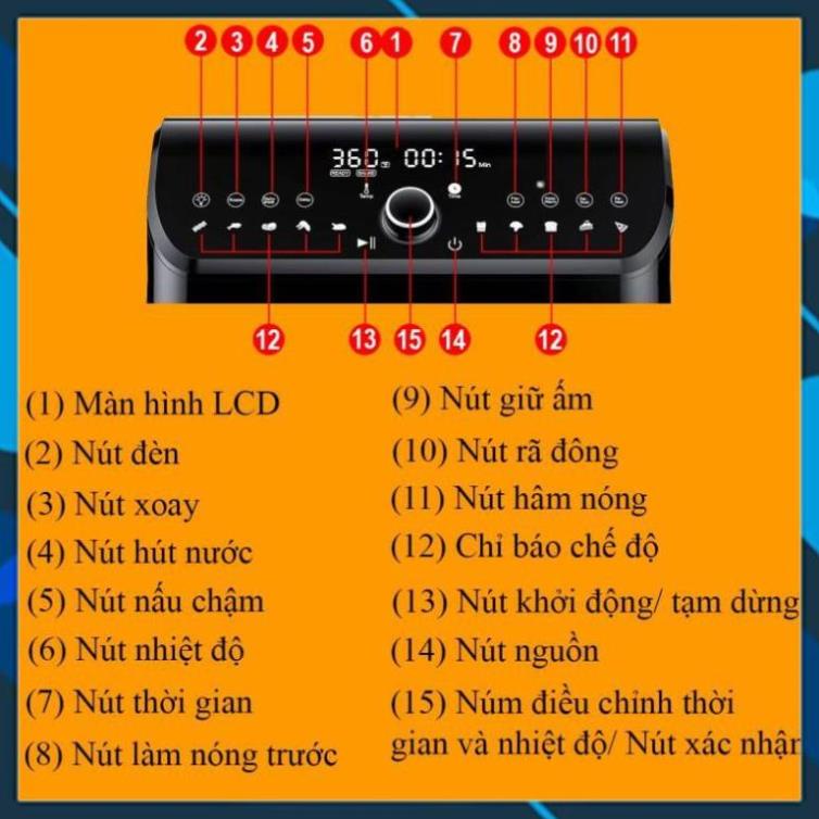 1️⃣ Nồi chiên không dầu Kalite Q12 được thiết kế với bảng điều khiển 15 chi tiết tiện lợi cho người sử dụng