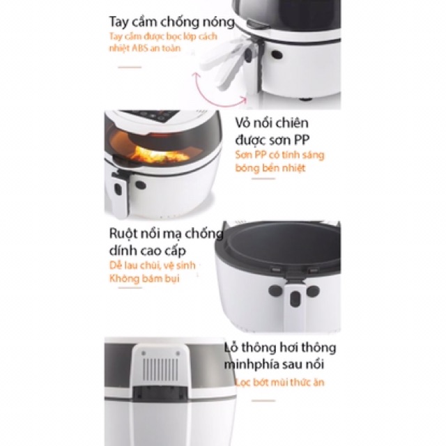 Nồi chiên với công nghệ hiện đại còn giúp giảm đến 80% lượng chất béo dầu mỡ có trong thực phẩm, khi đó bạn có thể thoải mái thưởng thức những món ăn ngon mà ko sợ bị béo phì, ung thư hoặc tăng cholesterol...