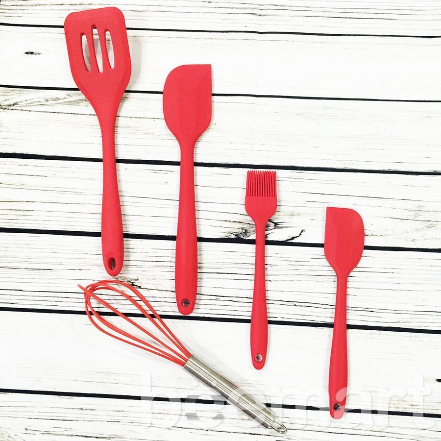 (Sẵn hàng TO) Bộ Dụng Cụ Làm Bánh Silicone [Bảo Vệ Sức Khỏe - Bảo Vệ Môi Trường]. Bộ 5 chổi phới spatula silicon đỏ