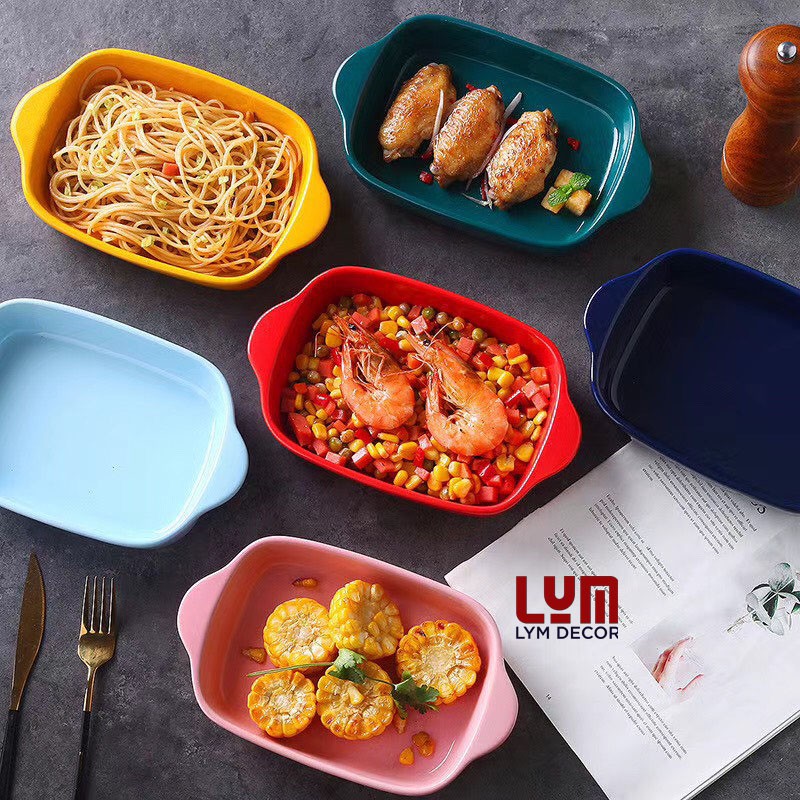 Nhà cửa & Đời sống > Bộ đồ bàn ăn > Dĩa || (SẴN) Khay nướng chữ nhật sâu lòng men bóng, khay sứ phong cách Bắc Âu - Hàng xuất khẩuCòn hàng