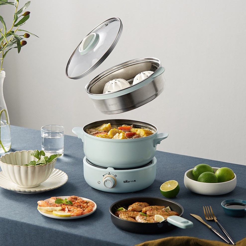 Nồi lẩu điện đa năng Bear DHG-B25Z1 tích hợp nhiều chức năng: Chiên, hấp, xào, nấu