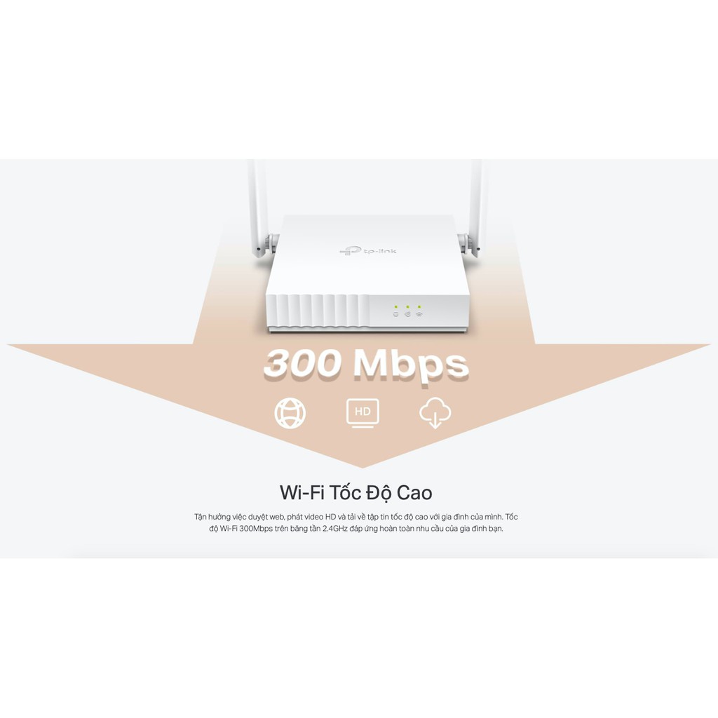 Tốc độ Wi-Fi lên đến 300Mbps lý tưởng cho các công việc hằng ngày như lướt web, gửi email và phát video trực tuyến