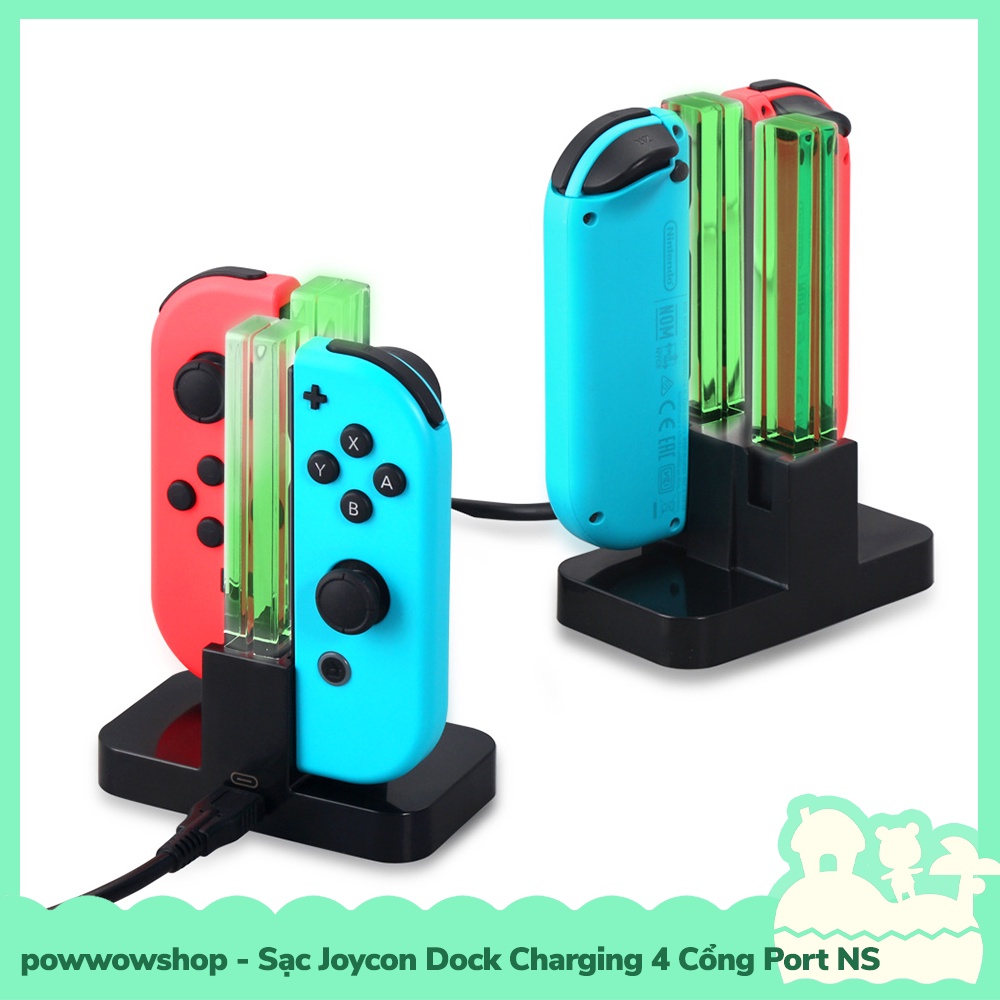 * Dock Station được thiết kế nhỏ gọn cầm tay, được sử dụng để sạc Joycon của máy game Nintendo Switch, hoặc các loại joycon khác được thiết kế cho máy game này, sản phẩm có cung cấp 4 n.điện và sạc lên tới 4 joycon cùng lúc.
