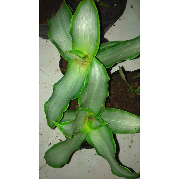 Cây có lá nhìn giống lá thiết mộc lan, nhưng thân thảo, lá có viền xanh bên trong là nền ánh bạc trông rất tự nhiên.Các lá trên cây xoắn lại như hình ngôi sao.