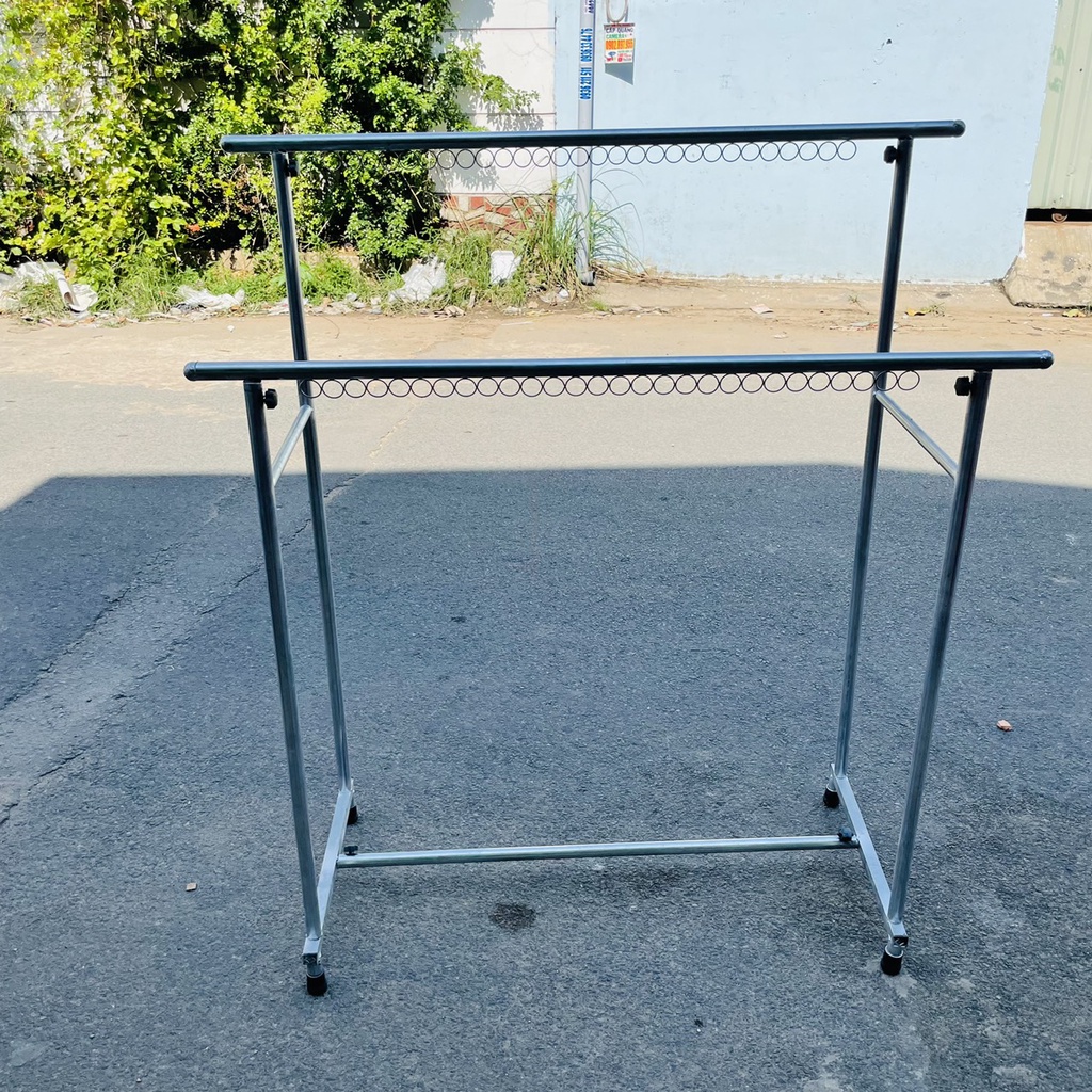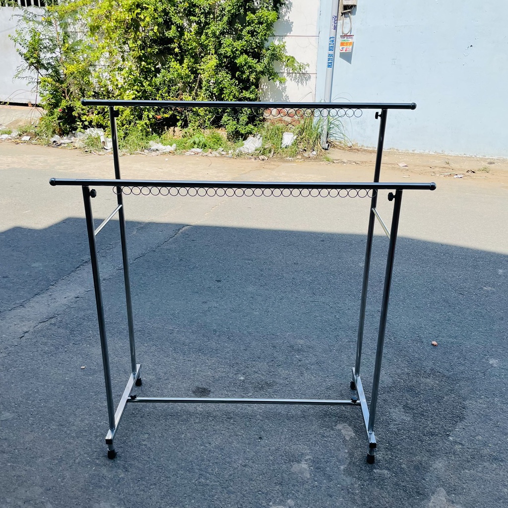 Nhà cửa & Đời sống > Dụng cụ chăm sóc nhà cửa > Dây phơi & giá phơi quần áo || Sào phơi đồ đôi khung sắt chắc chắn, chân vuông cao cấp, treo quần áo có khoen (R50*D120*C130cm)Còn hàng