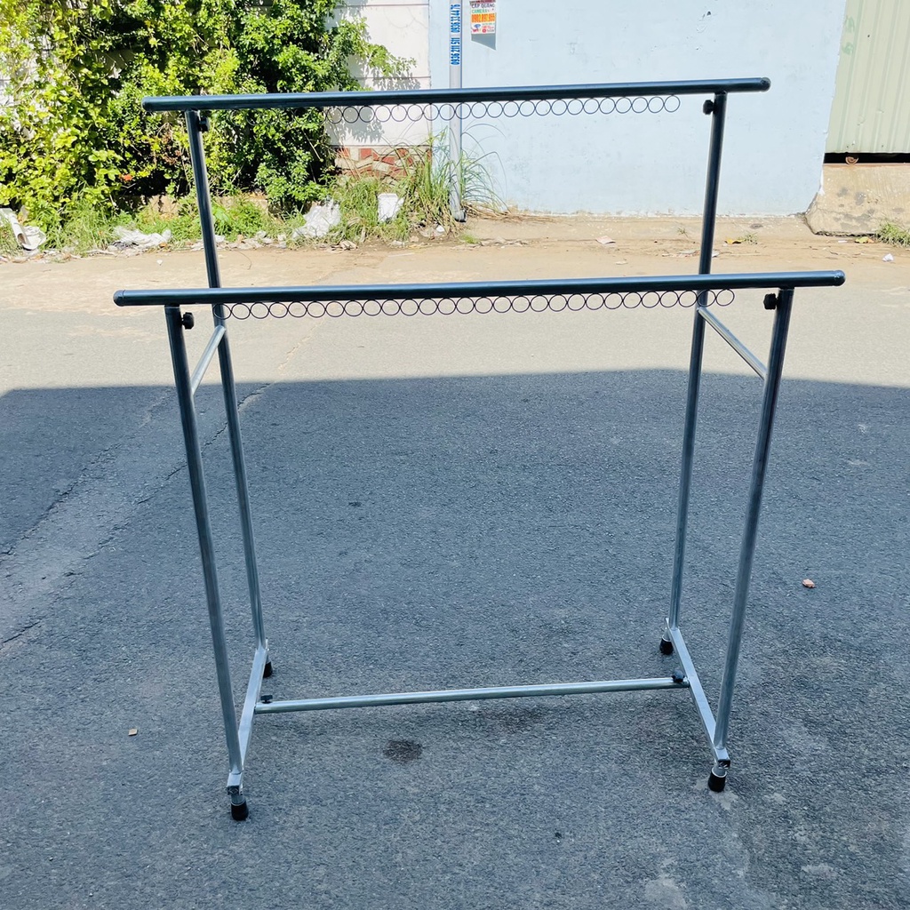 Sào phơi đồ đôi khung sắt chắc chắn, chân vuông cao cấp, treo quần áo có khoen (R50*D120*C130cm)