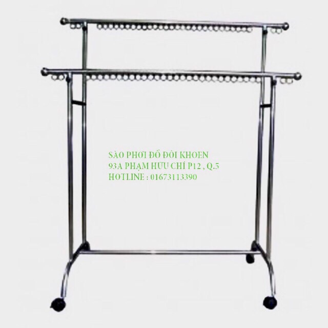 Sào phơi đồ inox 100% dầy dặn,chắc chắn.Có bánh xe nên dễ dàng duy chuyển.Sào đơn-đôi ko khoen va có khoen,tiện dụng, chấm dứt nỗi lo âu không có chổ phơi đồ.