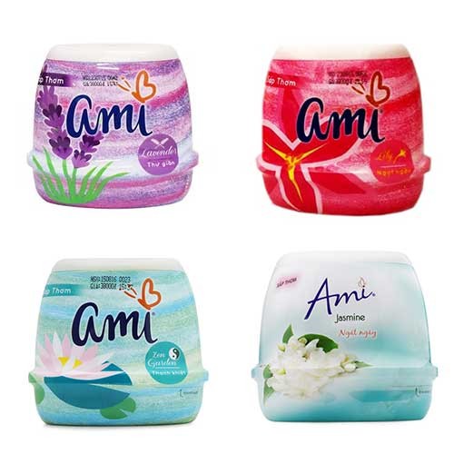 - Sáp thơm Ami chứa tinh dầu thơm tự nhiên, giúp khử mùi và lưu hương lâu. Kiểu dáng nhỏ gọn, sang trọng, sáp thơm Ami đặt ở bất kỳ không gian nào cũng mang đến một phong cách thật chuyên nghiệp, hiện đại