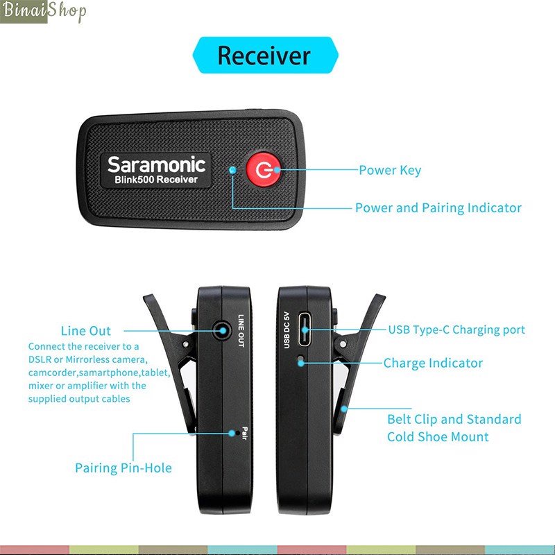 Saramonic Blink500 B1 / B2 - Micro Gài Áo Cho Máy Ảnh, Máy Quay, Sóng 2.4G, Cự Ly 50m, Pin 5h Liên Tục