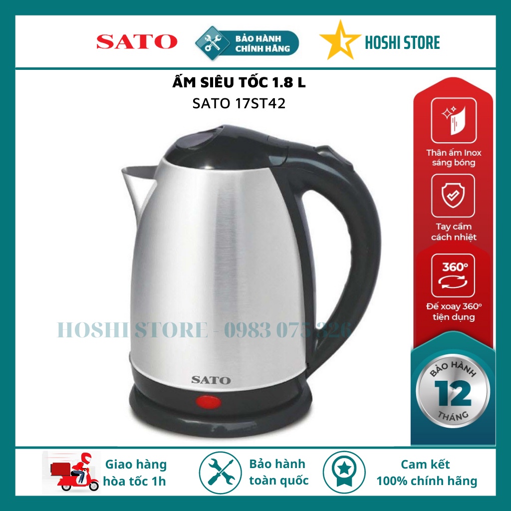 Giới thiệu {SATO VIỆT NHẬT} Ấm siêu tốc. Bình đun siêu tốc 1.8L SATO 17ST42 /17ST46 công nghệ Việt Nhât cao cấp, 2 lớp siêu bền