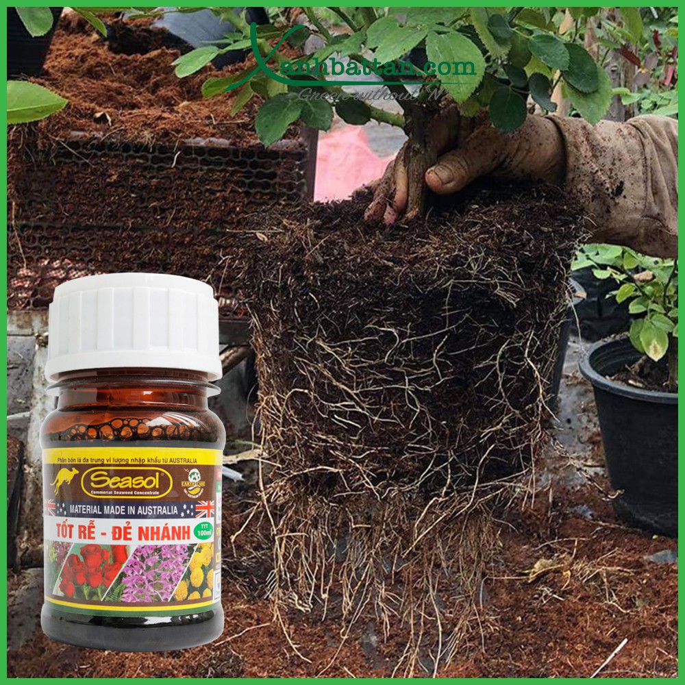 Phân Bón Kích Rễ Và Phục Hồi Rễ SeasolPhân Bón Tảo Biển Seasol được chiết xuất từ tảo bẹ nâu giàu hàm lượng hormone tự nhiên Auxin và các nguyên tố khoáng, đa-trung-vi lượng. Phân bón Seasol được dùng chính để kích thích sự phát triển của rễ non, giúp bộ rễ phát triển mạnh mẽ, rễ mập mạp, phục hồi bộ rễ bị hư tốn sau thời gian ngập úng và hạn hán. Bên cạnh đó, phân bón seasol còn có chức năng kích thích sự đẻ chồi, giúp chồi phát triển mạnh mẽ hơn.